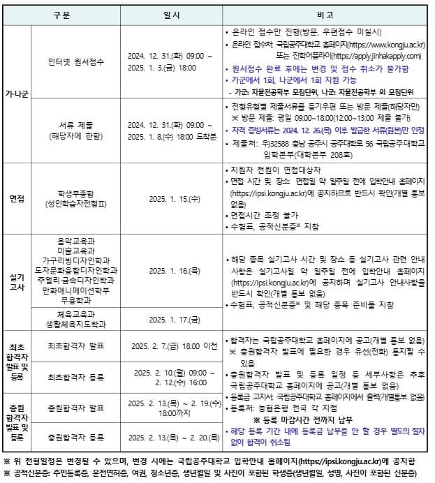 먼저 2025학년도 공주대 정시 주요 일정입니다.