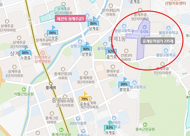 특히, 강남권을 대중교통으로 1시간 이내에 도달할 수 있는 교통 인프라는 아파트 가격이 10억 원 이상을 호가하는 다른 지역에 결코 뒤지지 않는 장점으로 작용하고 있는 부분입니다. 그래서 흔히 노원구를 성남 구시가지와 더불어 가성비가 좋은 지역으로 여기는 사람들이 많습니다.