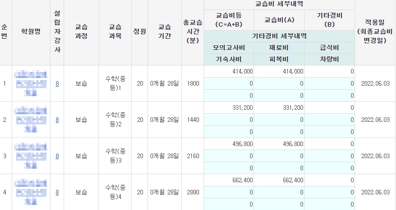 학원 민원 서비스를 통해 곧바로 확인 가능한 학원비는 정확한 가격이기 때문에, 학부모님들께서는 자녀를 학원에 보내시기 전에 학원비를 사전에 확인하시면 큰 도움이 될 것입니다. 학원 민원 서비스 홈페이지는 아래를 클릭하시면 바로 확인이 가능합니다.