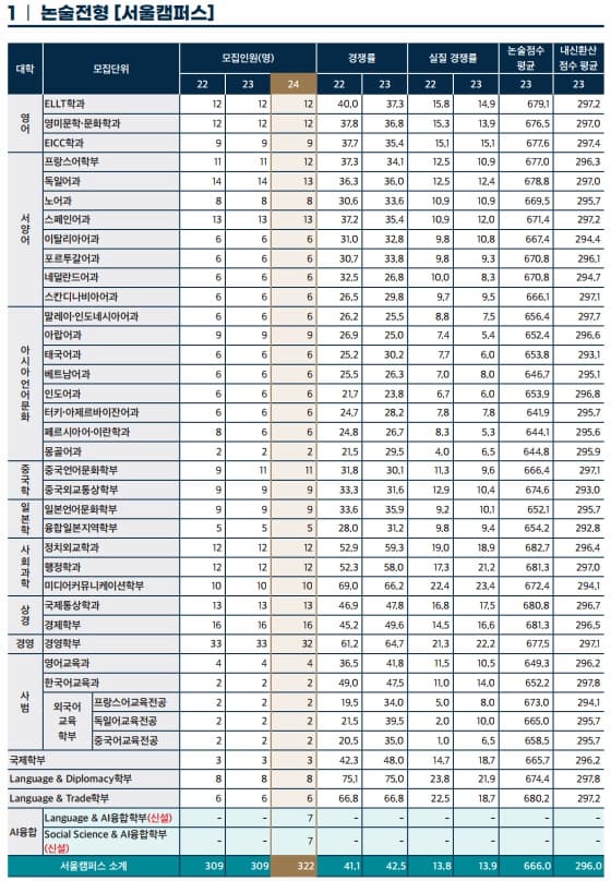 | 서울캠퍼스 | 전 모집단위 (KFL 학부 제외) |