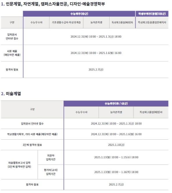 2025학년도 정시 주요 일정은 아래와 같습니다.